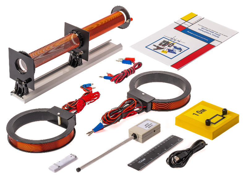 Набор демонстрационный предназначен для экспериментальной демонстрации магнитного поля, создаваемого электрическим током и силового взаимодействия между проводниками при протекании по ним электрического тока. Набор обеспечивает изучение основных понятий и закономерностей, изучаемых по темам «Магнитное поле тока» и сила Ампера, а также решение исследовательских задач, связанных со магнитным взаимодействием и структурой магнитного поля, создаваемого катушками различной геометрии.