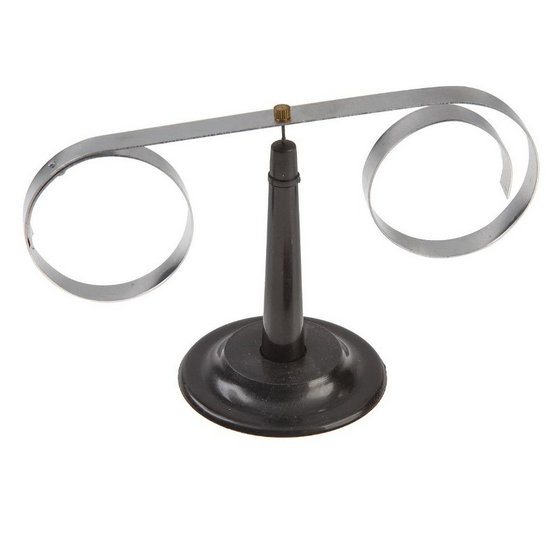Прибор для изучения правила Ленца представляет собой стойку с коромыслом (длиной 150 мм) и двумя алюминиевыми кольцами, одно из которых имеет прорезь.
