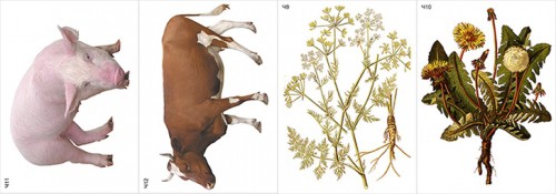 На карточках № Ч11-Ч22 изображены животные. Это домашние животные (№ Ч11-Ч16: свинья, корова, кошка, лошадь, курица и гусь), животные, которые могут встречаться не только в агроценозе, но и в естественном биоценозе (№ Ч17-Ч20: земляной червь, лягушка, крот и серая крыса), и, наконец, животные, встречающиеся только в естественных биоценозах (№ Ч21-Ч22 глухарь и кабан).