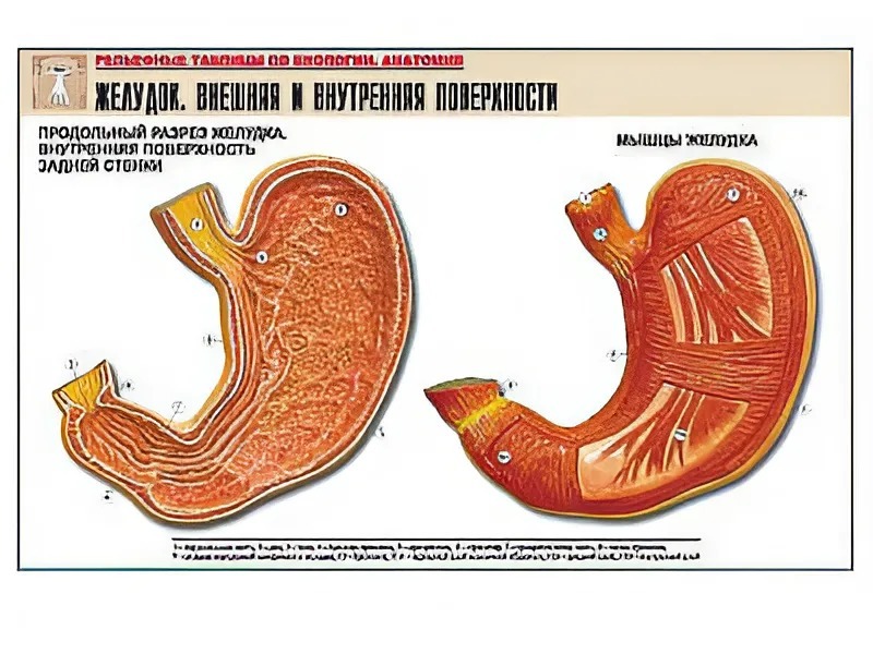 Рельефная таблица "Желудок. Внешняя и внутренняя поверхности" (формат А1, матовое ламинирование) - fgospostavki.ru - Ейск