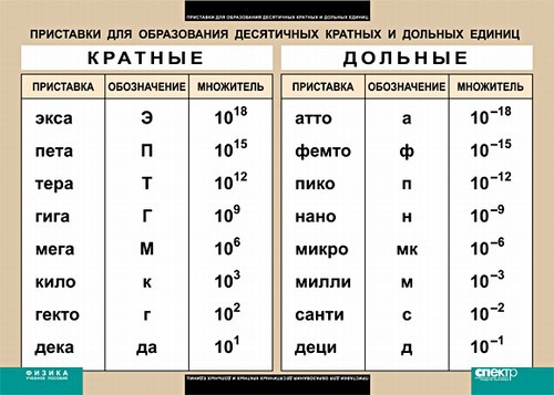 Таблица. Физика. Приставки для образования десятичных кратных и дольных единиц. - fgospostavki.ru - Ейск