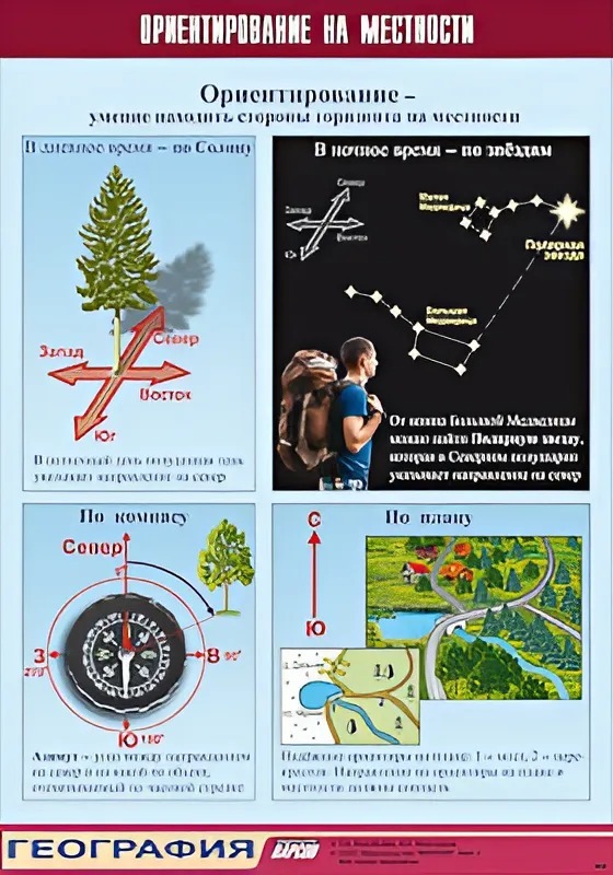 Главная Каталог Демонстрационные учебно-наглядные пособия Кабинет географии Таблица демонстрационная "Ориентирование на местности" (винил 100*140)
