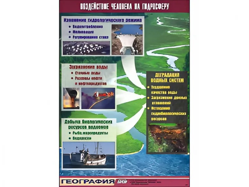 Таблица демонстрационная "Воздействие человека на гидросферу" (винил 100*140)