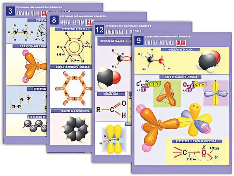 Комплект таблиц по органической химии "Строение органических веществ" (16 таблиц, формат А1, ламинированные)