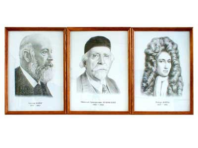 На портретах указаны фамилии (с именами, либо с именами и отчествами) и даты жизни ученых. При подготовке портретов использованы наиболее известные изображения ученых.