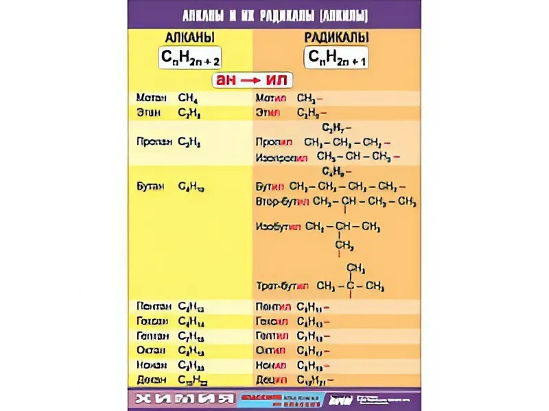 Таблица демонстрационная "Алканы и алкилы" (винил 100х140)
