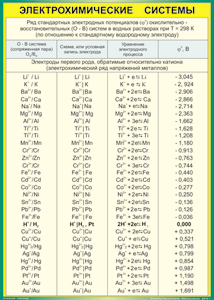 Таблица "Электрохимические системы.Электроды 1-го рода" (100х140 сантиметров, винил)