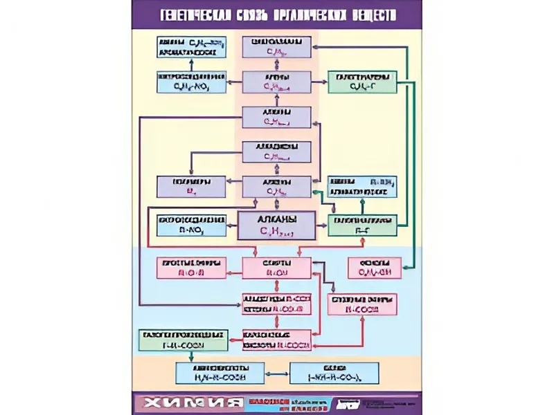 Таблица демонстрационная "Генетическая связь органических веществ" (винил 100x140) - fgospostavki.ru - Ейск