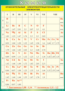 Таблица "Относительные электроотрицательности элементов" (100х140 сантиметров, винил) - fgospostavki.ru - Ейск