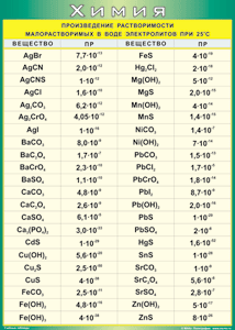 Таблица "Произведение растворимости малорастворимых в воде электролитов при 25°С" (100х140 сантиметров, винил) - fgospostavki.ru - Ейск