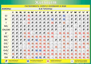 Таблица "Растворимость солей и оснований в воде (анионы и катионы)"