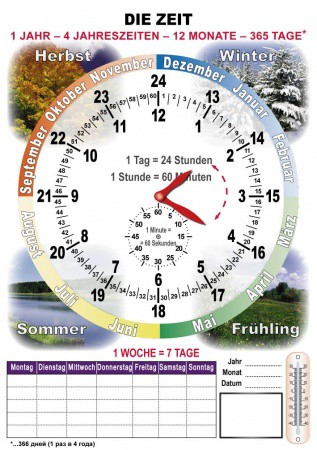Таблица для кабинета иностранного языка, с подвижными стрелками для иллюстрирования темы «Время», «Единицы времени» (час, минута, секунда)