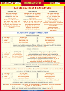 Главная Каталог Демонстрационные учебно-наглядные пособия Кабинет иностранных языков Таблица "Грамматика немецкого языка. Имя существительное" (100х140 сантиметров, винил)