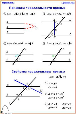 1. Признаки и свойства параллельных прямых (справочная)