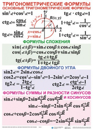 3. Тригонометрические формулы (Формулы преобразования произведения тригонометрических функций в сумму или разность. Преобразование выражения вида: a sinx + b cosx).