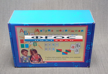Карточки с буквами и знаками (заламинированные), всего в наборе 412шт. Перед началом работы с пособием на карточки нужно наклеить магнитную резину, предварительно сняв с нее защитный слой. На каждую букву приходится несколько карточек, что позволяет использовать комплект для составления простых слов и небольших предложений. Кроме того, пособие позволяет производить и фонетический разбор слов, используя для этого цветные графические изображения условных знаков букв и слогов. Для изучения фонетических особенностей русского языка гласные буквы отпечатаны красным цветом, твердые согласные – синим цветом, а мягкие согласные – зеленым. Карточки уложены в ячейки складной картонной коробки. Коробка упакована в прозрачную термоусадочную пленку.