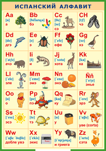Главная Каталог Демонстрационные учебно-наглядные пособия Кабинет начальной школы Таблица "Испанский алфавит в картинках (с транскрипцией)" (100х140 сантиметров, винил)