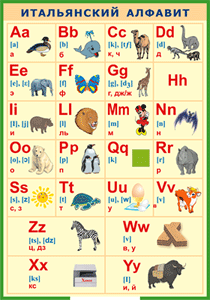 Таблица "Итальянский алфавит в картинках (с транскрипцией)" (100х140 сантиметров, винил)