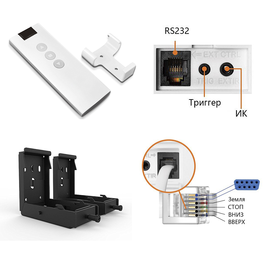 - Тихий мощный мотор с возможностью настройки нижнего и верхнего положения экрана;
