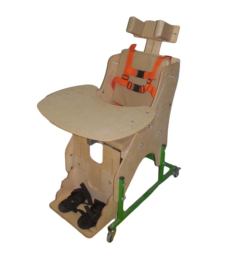 Опора для сидения представляет собой ортопедическое кресло на деревянной раме, расположенной на металлическом четырехколесном основании. Все колеса поворотные, задние колеса оснащены стояночными тормозами. Сидение и спинка оснащены съемными мягкими подушками. На подножке расположены пластиковые крепления для ступней типа «сандалии» с задними упорами и крепежными ремешками. Опора оснащена подголовником и съемным столиком, устанавливаемым на подлокотники.