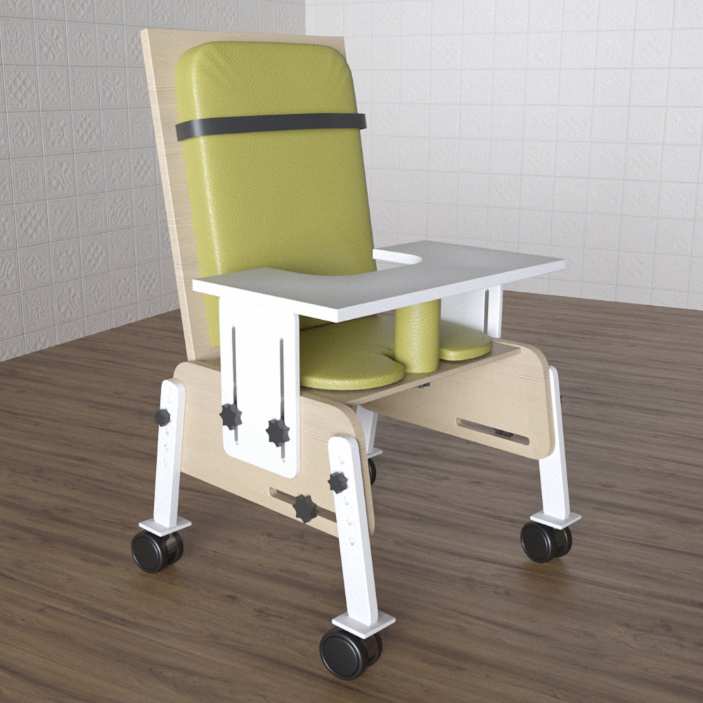 Детский стул модели «Новые горизонты» №1 разработан для детей с ДЦП и прочими нарушениями двигательного аппарата как адаптационный модуль. Конструкция стула предполагает автономность – в комплекте уже есть небольшой столик, на котором можно разместить учебник, или использовать его в качестве обеденного. Столешницу можно отрегулировать до нужной высоты. Мобилен благодаря колесикам. Предназначен для оборудования кабинетов специалистов, занимающихся реабилитацией детей с ОВЗ, учебных помещений в центрах коррекции и реабилитации.
