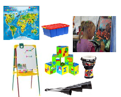 В состав данного комплекта вошли игровые наборы и игрушки, развивающие коммуникативные навыки и оборудование и творческие способности ребенка.