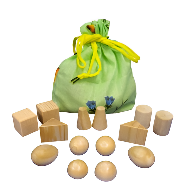 Представляет собой набор из 12 деревянных геометрических тел (куб, шар, эллипсоид, цилиндр, усеченный конус, полусфера), изготовленных из дерева.