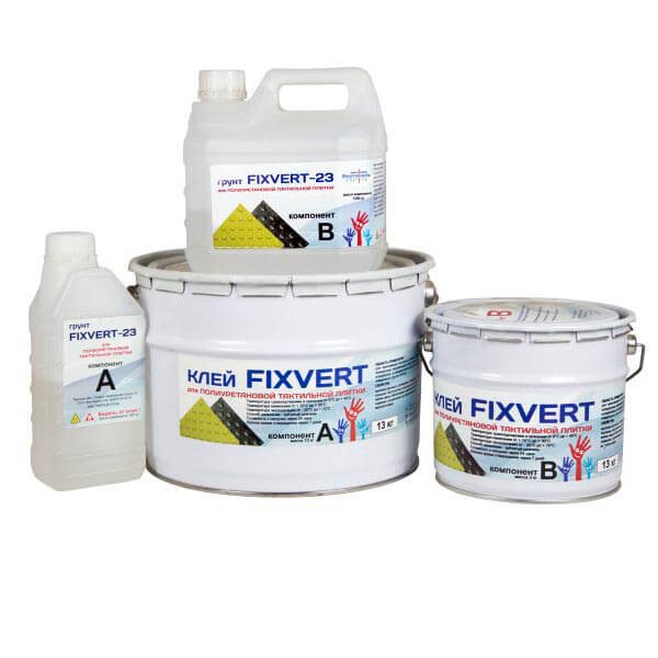 Клей поставляется совместно с 2х-компонентным грунтом. Предварительное грунтование поверхности способствует увеличению адгезионных свойств как подстилающей поверхности, так и поверхности тактильной плитки