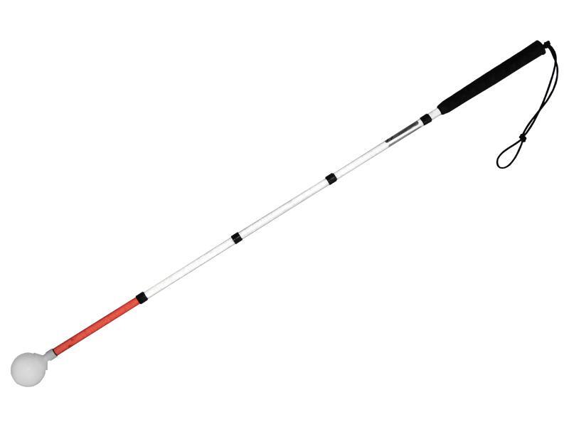 Складная ориентационная белая трость из композитовых трубок. Композит является особо лёгким и прочным материалом. Главное преимущество трости в её конструкции, которая при складывании позволяет не пачкать ручку трости.