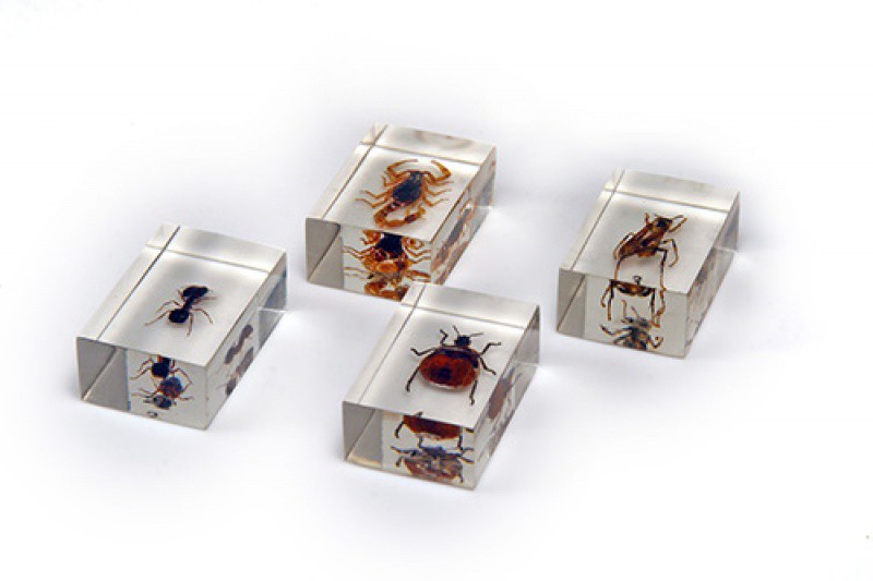 Комплект микропрепаратов создан специально для стереомикроскопов. Состоит из 3 наборов. 1-й набор из следующих препаратов: скорпион, гигантский муравей, оса, клоп. 2-й набор из: сверчок, саранча, желтый жук-листоед, краб. 3-й набор из: соль, сахар, хлопок, шерсть собаки, перо, волос человека, кирпич, песок, перец, голова/крыло/нога пчелы, лист дерева. Все препараты заключены в акриловые призмы.