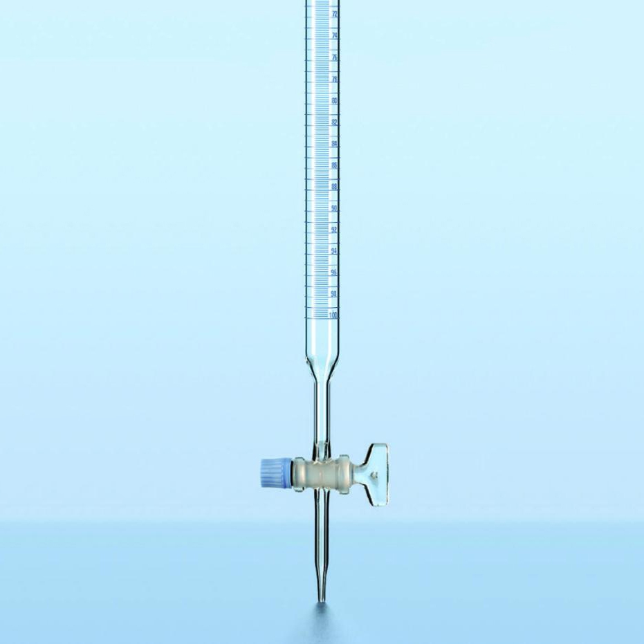 Бюретка с краном 100 мл предназначена для точного отмеривания небольших количеств жидкостей, а также для титрования.Имеет конусный стеклянный одноходовой пришлифованный кран с резьбовым уплотнением.