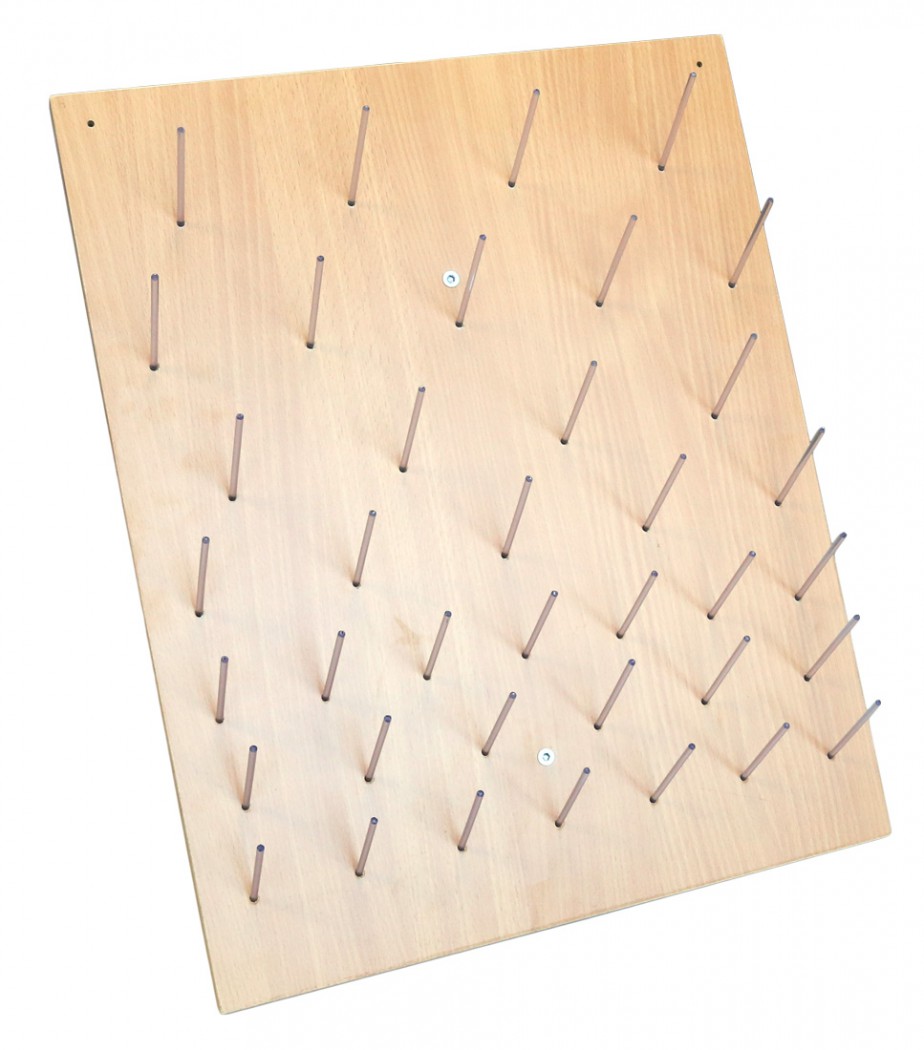 Доска представляет собой деревянную панель с 38 держателями для посуды. Доска имеет 2 отверстия для крепления к стене на шурупы (которые входят в комплект поставки). Также доска имеет подставку для автономного размещения на столе.