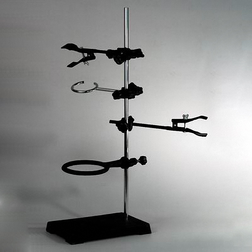 Конструкция штатива позволяет располагать муфты на различной высоте и вращать их во всех плоскостях, что облегчает монтаж установок и приборов.