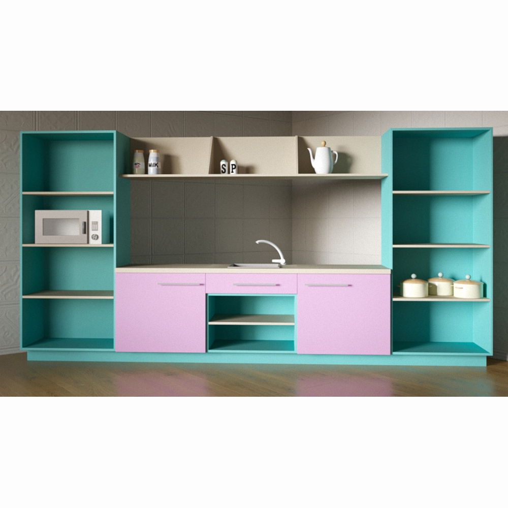 Детская кухня «Анастасия» окрашена в приглушенные розово-голубые тона, что позволяет поместить ее в любое помещение, не опасаясь того, что она может не подойти или будет неуместно выделяться. Фасад изготовлен из прочного материала высокого качества – это обеспечит долгое пользование без потери привлекательного внешнего вида.