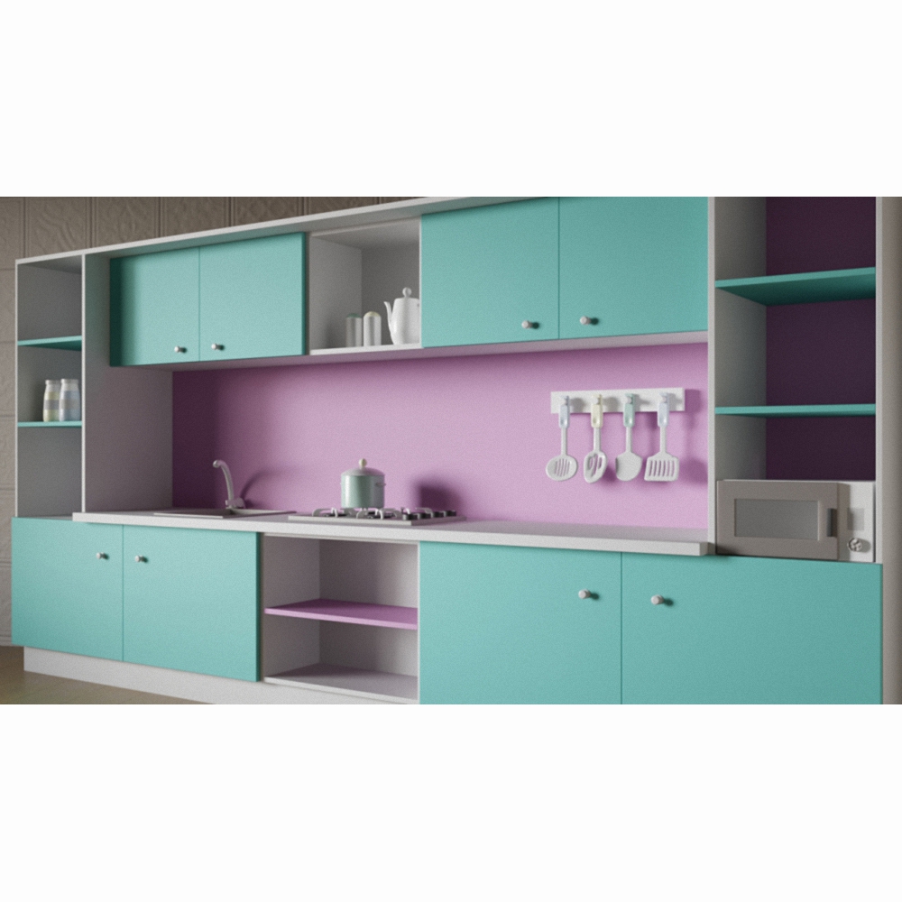 Эта детская кухня словно создана для маленьких принцесс – такая она нежная и милая! Мягкие оттенки лилового и бирюзового цветов немного разбавлены нейтральным белым, что в целом создает ощущение легкости и свежести. Изготовлена из высококачественных материалов – это позволяет пользоваться кухней не один год.