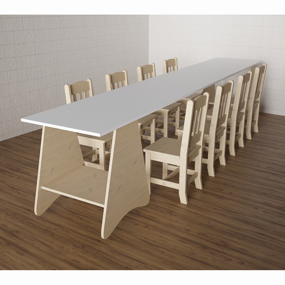 Детский стол «Вместе веселее» - прекрасная находка для развивающих и творческих детских центров. Стол имеет восемь посадочных мест, что позволит проводить занятия сразу со всеми детьми. Сбоку стола есть полочка, где можно разместить книги и тетради. Стол прочный и устойчивый, даже непоседы могут чувствовать себя в безопасности. Если у вас многодетная семья, этот стол также для вас прекрасный вариант. Он с удовольствием послужит вашим помощником. Дизайн и цвет стола хорошо подойдут к любому интерьеру. Предназначен для детей от 3-х лет.