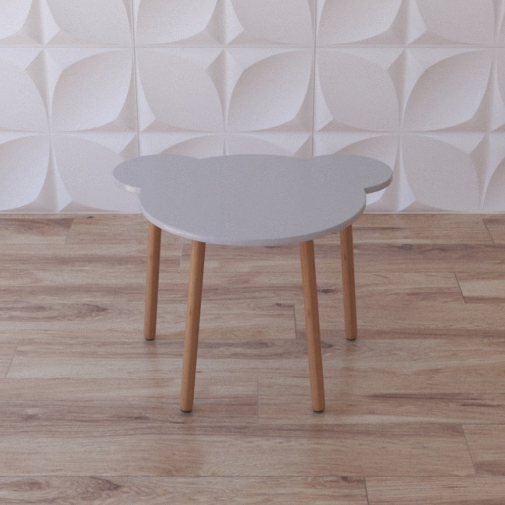 Детский деревянный стол “Мишенька” нужен для обустройства индивидуальными учебными местами групп в ДОУ, начальных школ и школ искусств. Исполнение конструкции простое, отличается оригинальной формой столешницы, силуэт которой напоминает голову медвежонка; цветовая гамма максимально приближена к натуральным природным оттенкам. Состоит из 4 ножек и столешницы. Группа из таких столиков не только обеспечит учебными местами учреждение, но и украсит его, придав интерьеру законченный вид благодаря универсальному виду каждого из элементов группы.