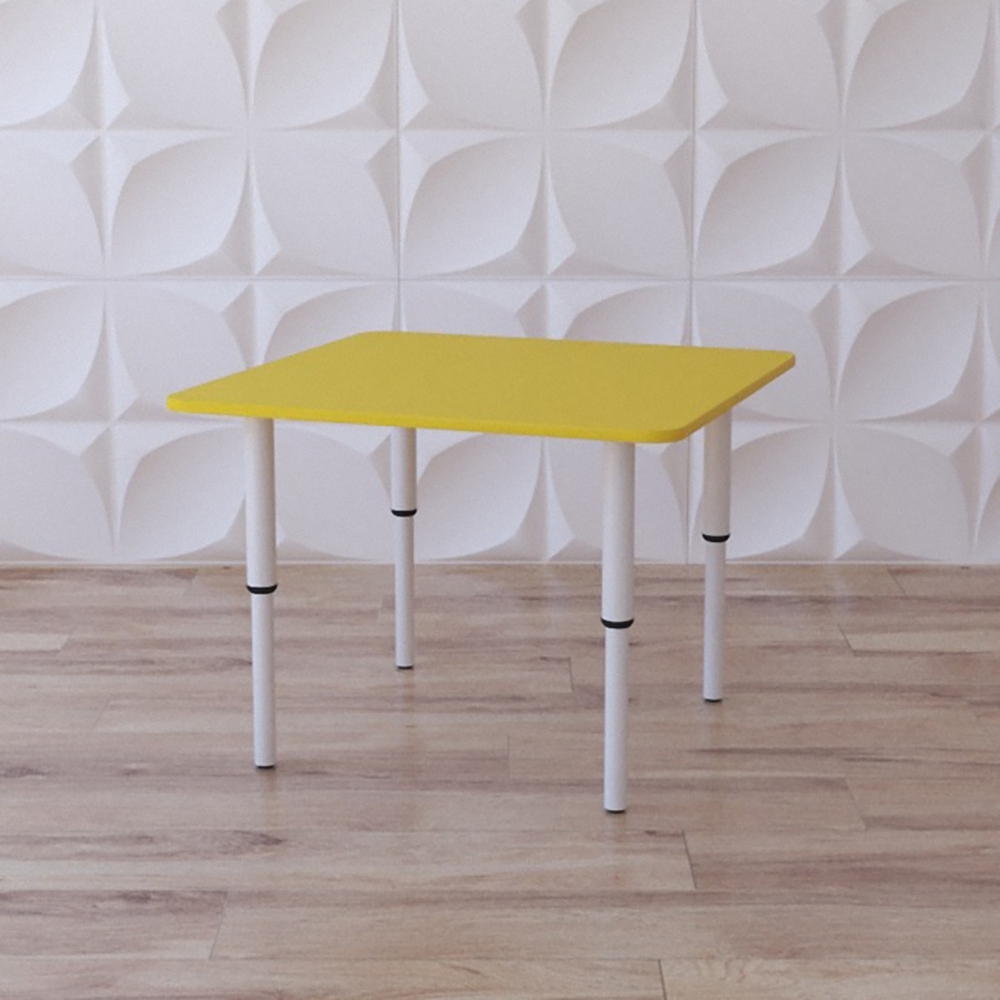 Детский стол растущий представленной модели нужен для оборудования групп в ДОУ, коррекционных и развивающих центрах. Стол легкий, имеет простую конструкцию, состоит из 4-х телескопических ножек (которые можно настроить по высоте) и прямоугольной столешницы, окрашенной в жёлтый цвет. За ним могут свободно разместиться от 1 до 2 детей. Группа из таких столов обеспечит учебными местами учреждение образования и не только – они одинаково к месту будут смотреться как в группе детсада, так и в художественном классе, на подготовительных занятиях к школе или дополнительных занятиях для младших школьников.