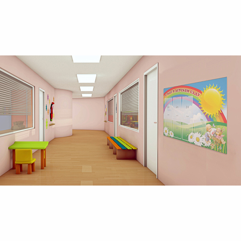 Если вы впервые пришли в детский сад устраивать своего ребёнка, этот стенд для Вас! На стенде есть специальные разделы «Режим работы детского сада», «Знакомьтесь, наши воспитатели», «Родителям на заметку», «Как приготовить ребенка к детскому саду». В пустых карманах формата А4 могут быть размещены важные объявления, плакаты, фотографии и различные информационные листы о жизни детского сада. Стенд украшен изображением радуги, солнца и цветов.
