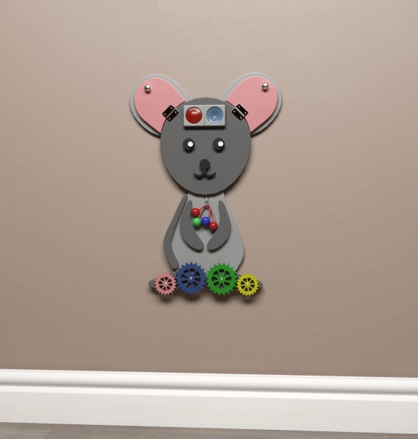 Бизиборд в виде мышки не только украсит любую детскую комнату, но и развивает умственные качества ребенка. Игра выполнена из качественных и безопасных материалов.