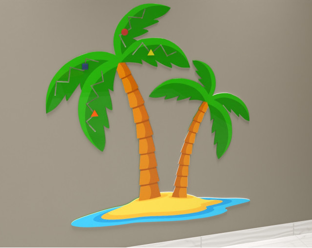 Бизиборд – дидактическое приспособление с игровым уклоном для детей от 1 года. Бизиборд в виде острова крепится к стене, отличается лаконичным исполнением, замечательно экономит игровое пространство, не уменьшая при этом его ценности. Основа изготовлена в форме островка, на котором растут 2 пальмы. Поверхность бизиборда обработана по специальной технологии, что гарантирует безопасность в использовании даже самыми маленькими детками.