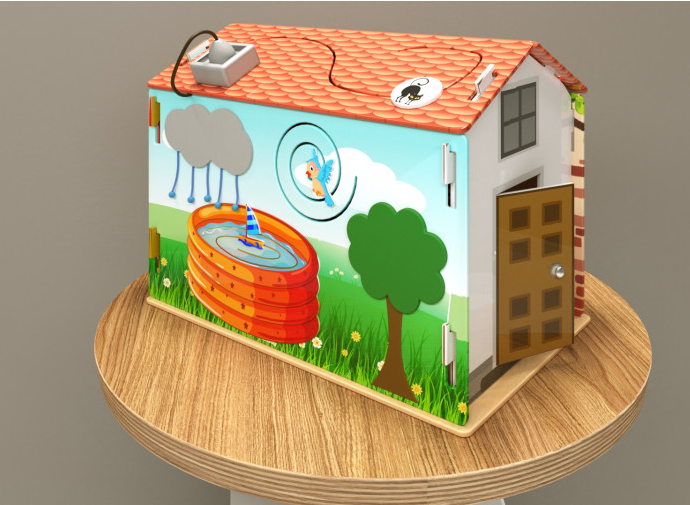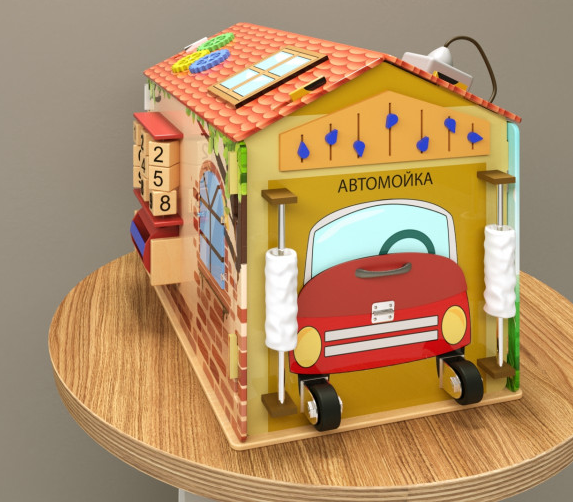 Бизикуб в виде чудо-дома – аналог бизиборда, игровой модуль с дидактическим уклоном для детей от 1 года. Несмотря на объёмную форму, бизикуб компактен, не занимает много места и замечательно экономит игровое пространство, не уменьшая при этом его ценности.