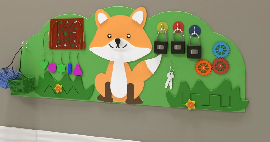 Настенная панель с лисой — это ценный детский игровой модуль, ведь с его помощью можно не просто занять ребёнка, но сделать это с пользой для его развития. А ещё настенную панель легко расположить в небольшом помещении благодаря компактному исполнению, что выгодно отличает её от объёмных аналогов. Поверхность обработана специальным образом и имеет многослойное покрытие из экологически безопасных материалов.