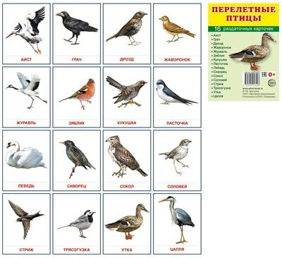 Раздаточные карточки "Перелетные птицы" - fgospostavki.ru - Ейск