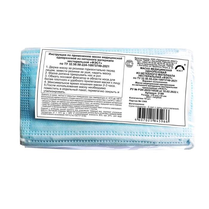 Маска медицинская нестерильная одноразовая (10 штук) - fgospostavki.ru - Ейск