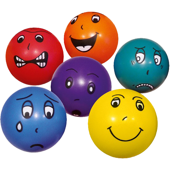 Набор состоит из 6 разноцветных мячиков с изображениями различных выражений лица.