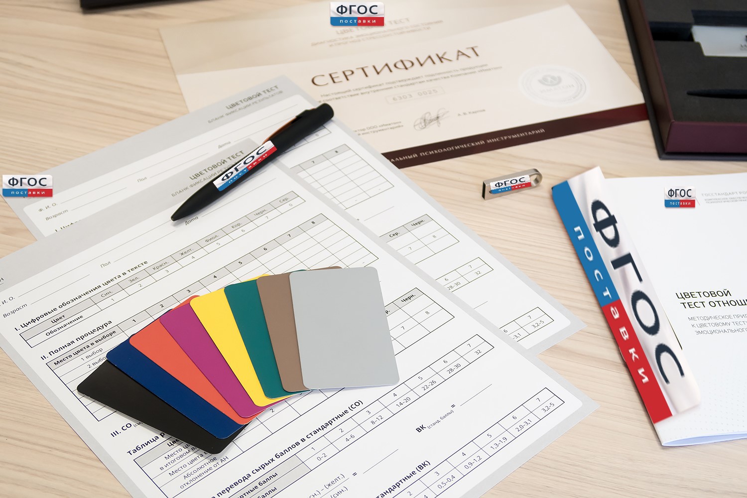 • 2 набора цветовых карточек в кассе