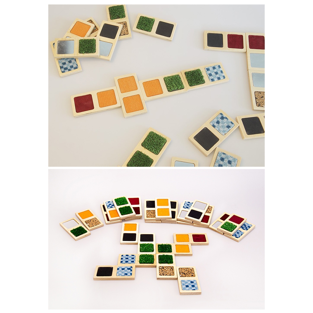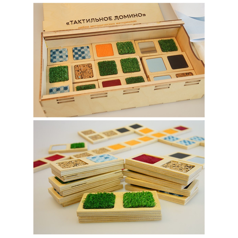 «Тактильное домино» предназначено для обучающих занятий с детьми дошкольного возраста, помогает ощутить разные фактуры предметов, их цвет, тактильные ощущения. Работа с набором учит детей групповой игре и взаимодействию в коллективе, тренирует зрительную память, развивает тактильное восприятие и пространственное мышление, а также помогает детям анализировать и сравнивать.