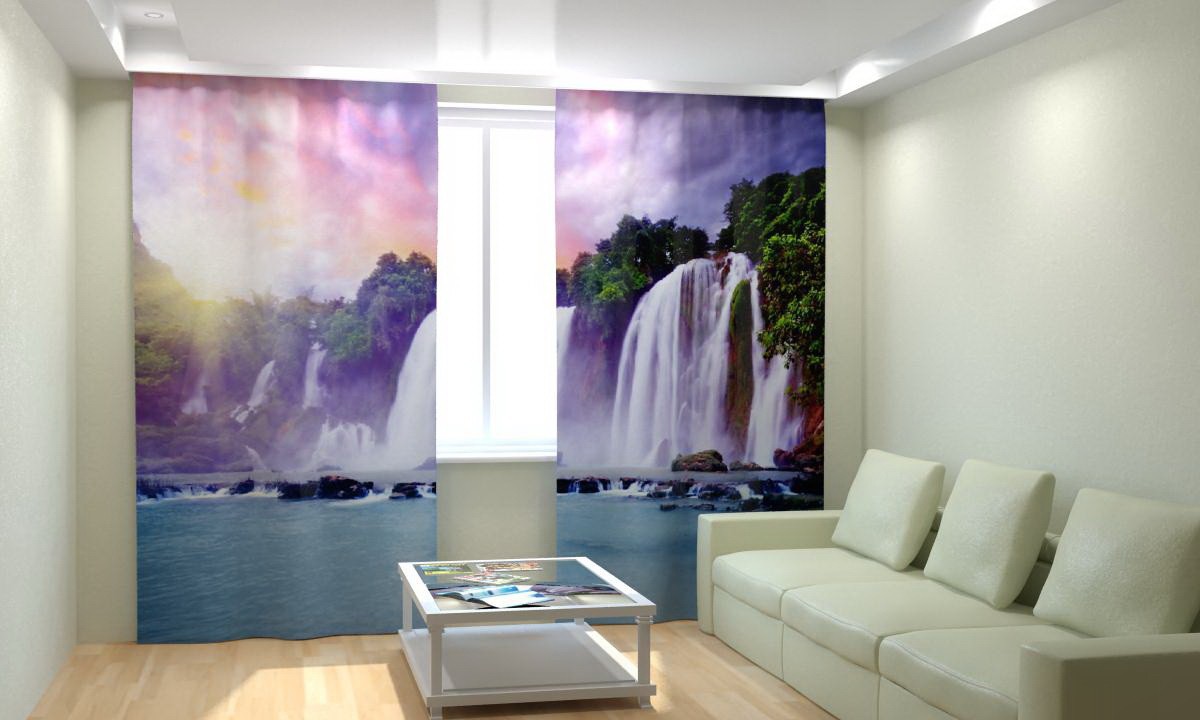 Комплект светонепроницаемых штор "Закат у водопада" - fgospostavki.ru - Ейск