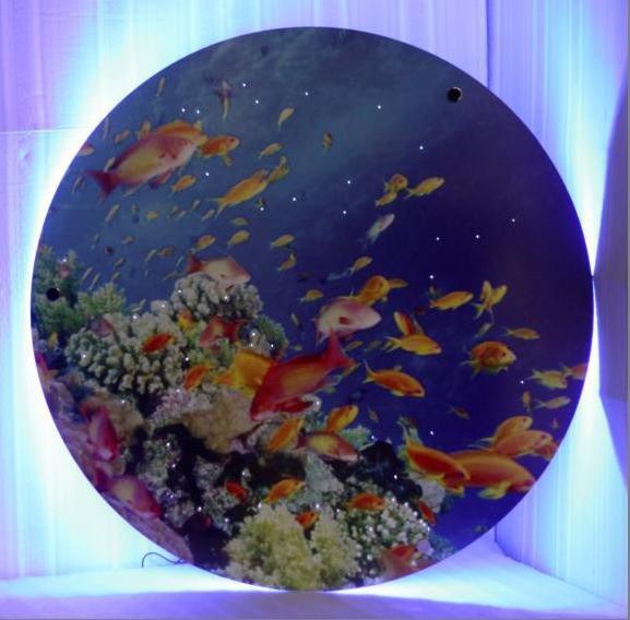 Настенное панно диаметром 100см, выдержанное в морском стиле, отлично впишется в зону релаксации в Сенсорной комнате любого вида. На изображении в формате 3D потрясающие виды морских глубин, разноцветные рыбки невероятной красоты, причудливые морские водоросли. Световое оформление по периметру панно создадут дополнительный визуальный эффект реальности. Светоэффекты управляются пультом ДУ.